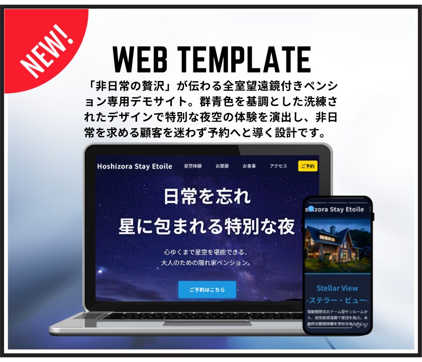 この度、非日常と高級感を追求した新しいデモサイト「Hoshizora Stay Etoile(星降るペンション エトワール)」を公開しました。